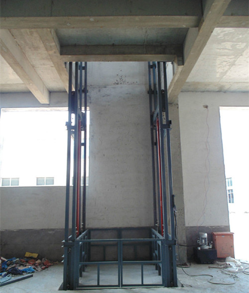 导轨式升降货梯液压系统的组成由防坠、上下层门互动连锁看,可以实现多楼层的控制,同时设有溢流阀、手动泵、管路破裂阀等安全装置使得设备的安全性能有极大的保障。对于导轨式升降机的台面设计,台面以防滑纹钢板材料,台面平整且防滑耐用。